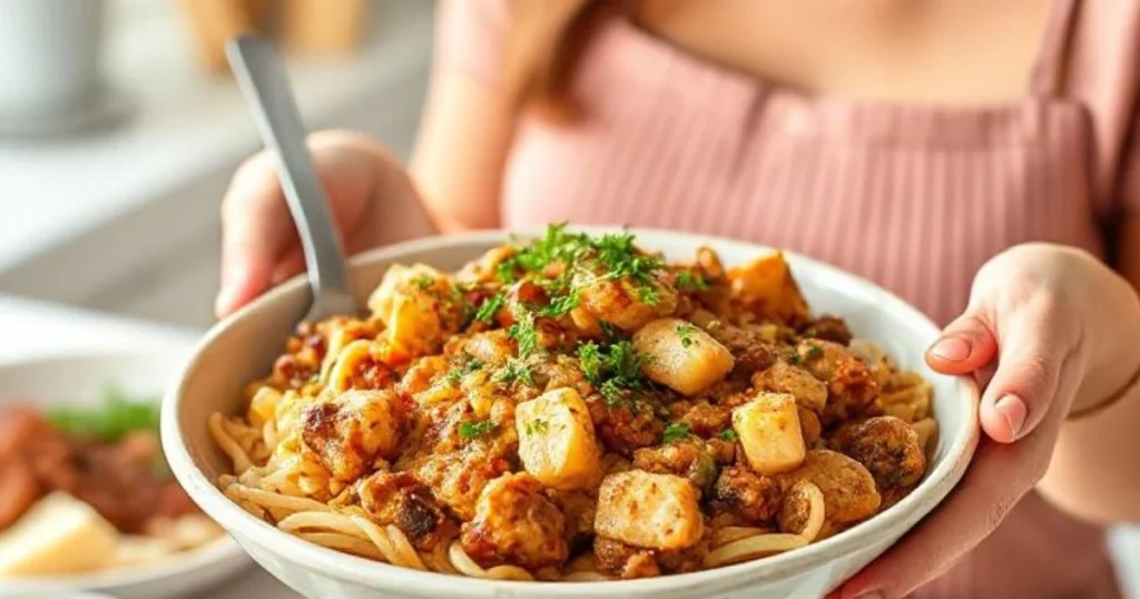 • Pair proteins with complementary carbs (chicken + pasta, beef + rice).