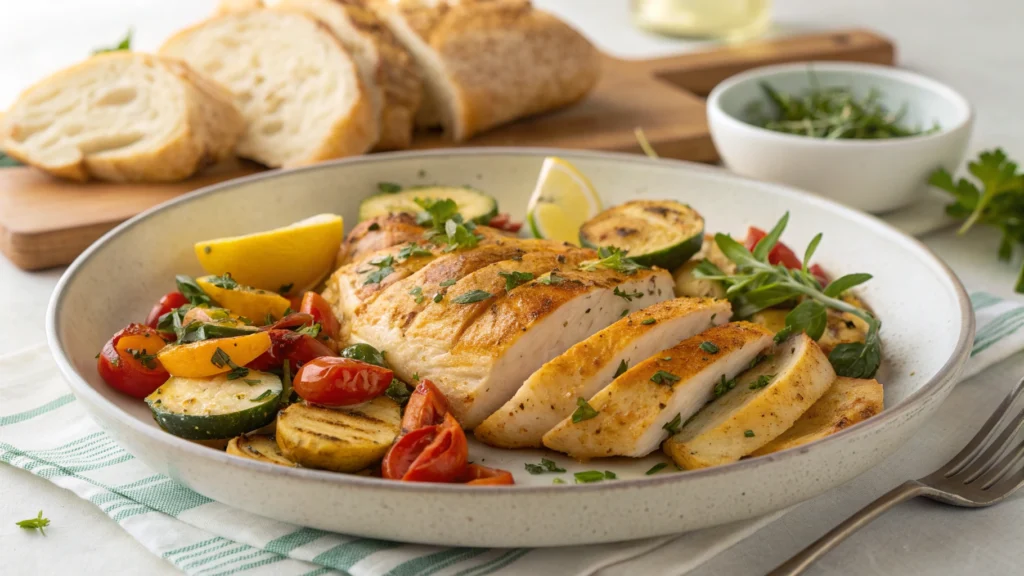 Start by preheating your oven to 425°F. Toss your vegetables with olive oil, salt, and pepper, then spread them on a baking sheet. While they roast, season your chicken and sear it in a hot skillet with butter until golden. Add minced garlic during the last minute (careful not to burn it), and you’ve got a sauce that’ll make you want to lick the plate.