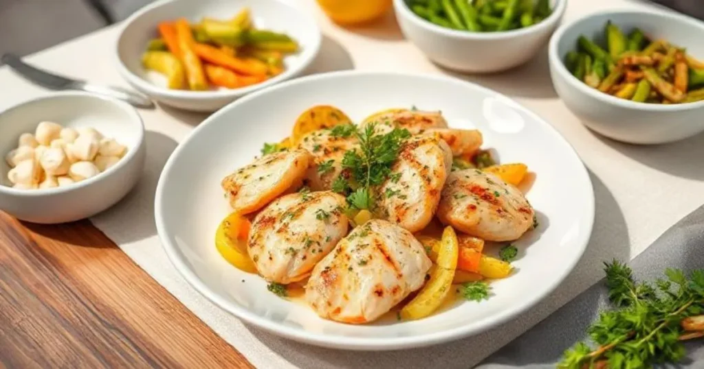 1. Lemon Garlic Chicken with Steamed Vegetables