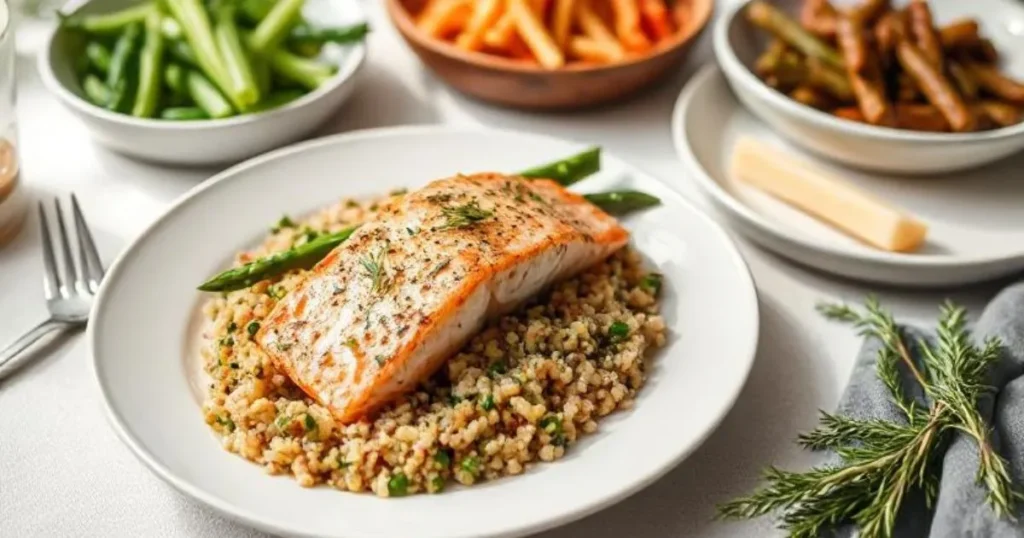 | Wednesday | Salmon with Quinoa and Asparagus | 5–6 |