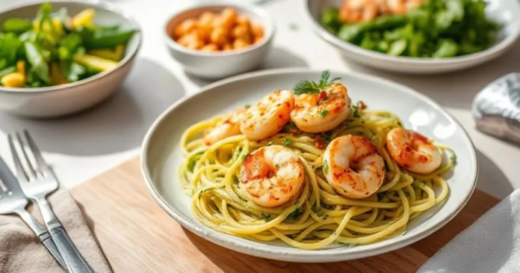 5. Zucchini Noodles with Pesto and Grilled Shrimp